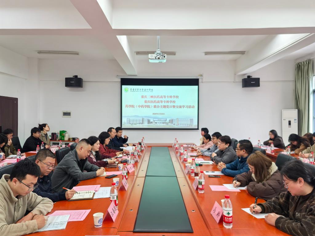 为强化党建引领,探索党建与业务深度融合的有效路径,3月26日,药学院党总支组织20多名党员教师,与重庆医药高等专科学校药学院联合开展党建交流座谈暨红岩精神主题党日。重庆医药高等专科学校药学院院长唐倩主持。