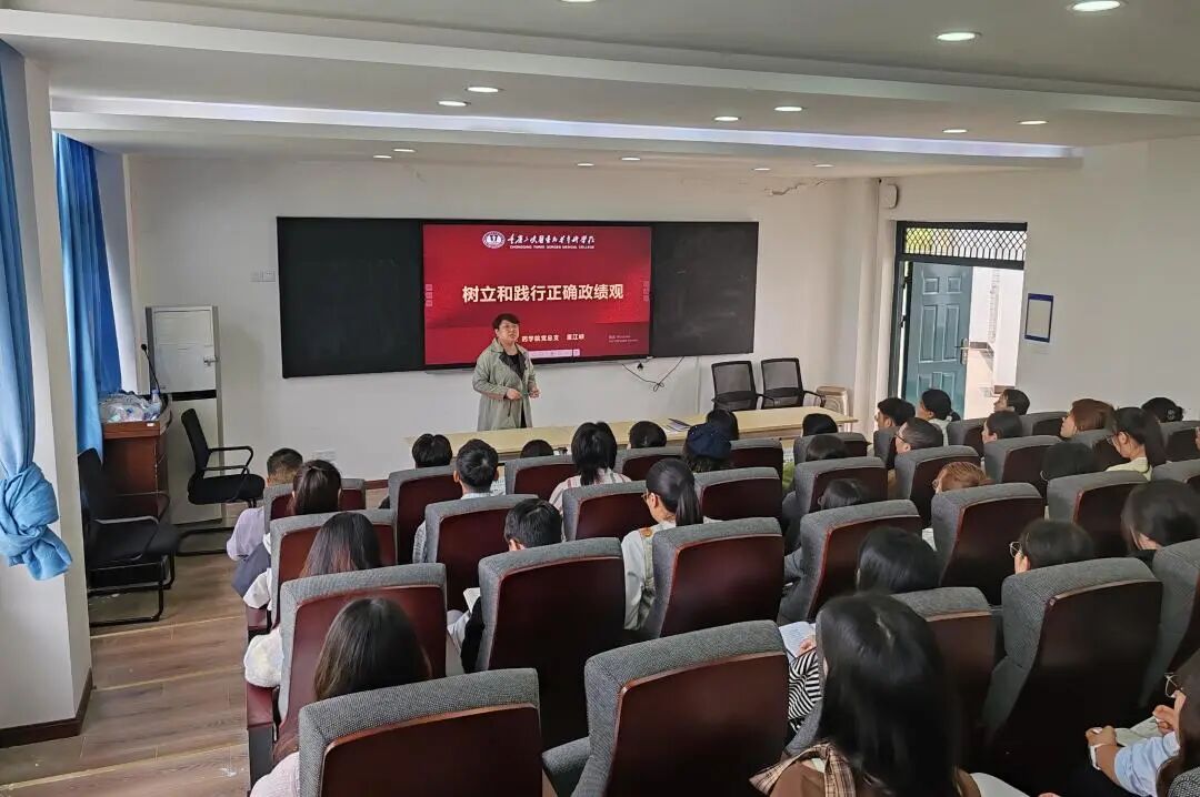 为深入学习贯彻习近平新时代中国特色社会主义思想,扎实推进树立和践行正确政绩观学习教育,4月14日,药学院党总支举办树立和践行正确政绩观专题党课。党课由党总支书记董江峡主讲,学院全体党员参加学习。
