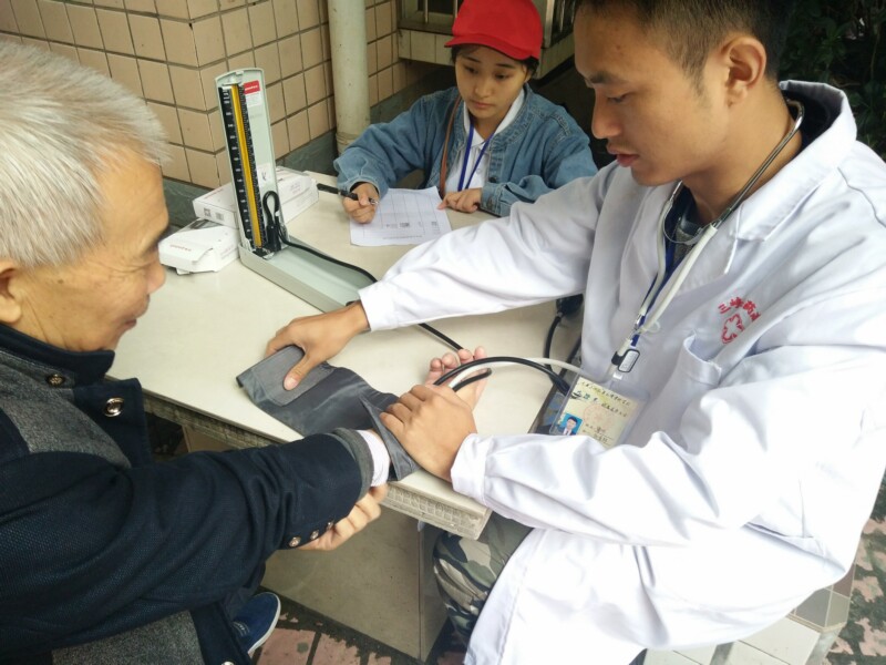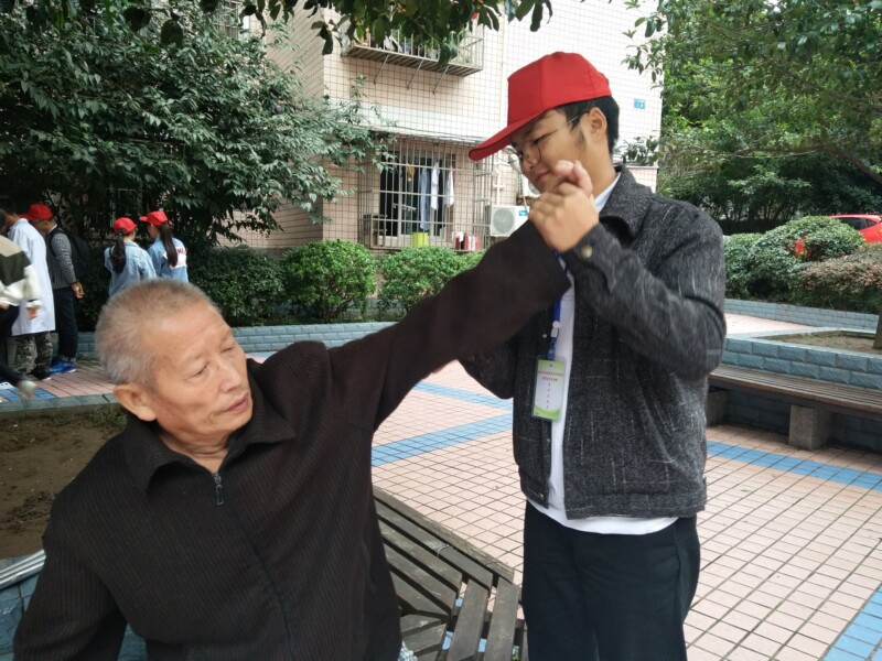 社区的广场上,大学生青年志愿者们为老人测血压、剪指甲、按摩、进行思想交流和养护沟通。前来参与测量血压的社区居民也络绎不绝,以中老年人居多,测量过程中志愿者们彬彬有礼,严肃认真,耐心询问老年人的日常生活状况,对血压偏高的居民提出合理的健康饮食建议,强调生活习惯的重要性和饮食习惯的科学性。如:少饮酒、不抽烟、注意午休和早睡,保持愉悦的心情,少做剧烈运动等等。同学们用专业的知识和温馨的话语,感动着社区的居民,把一滴滴温暖送进老人们的心坎里。