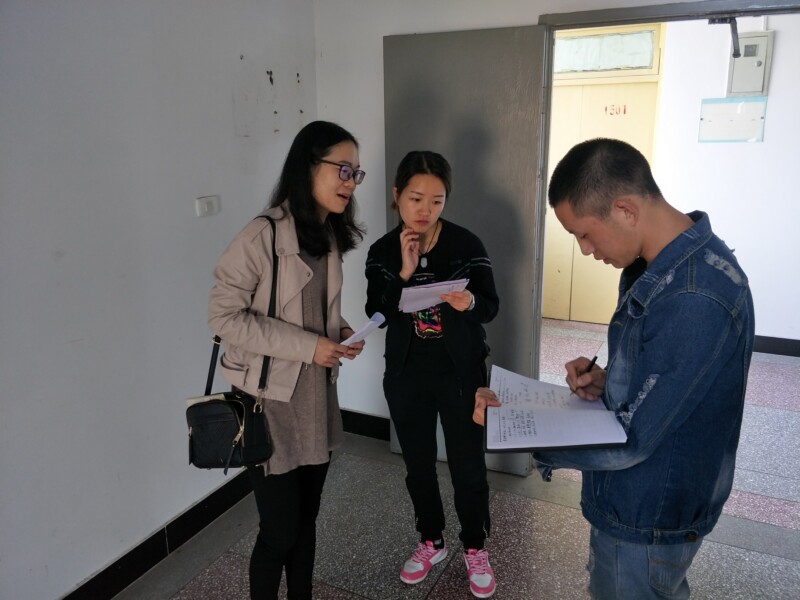 同志们发现问题及时与学生交流,现场提出改进方法和整改意见。他们有的与个人面对面交流,有的与寝室全体人员共同商讨整改意见。党员谭宗林同志对打游戏的同学语重心长的说:“来到大学,我们是为了更好的学习,以便未来成长为更优秀、对社会有用的人,游戏只适合适当的放松,如果沉迷游戏无法自拔,便失去了来到学校的意义。”党员黄倩、谭睿等亲自动手帮助学生及时改进,整理排放书籍、生活用品等。同学们积极配合老师的检查,敢于面对问题,及时进行整改。值得表扬的是1410、6314等48个寝室学习用品、生活用品摆放整齐,寝室环境整洁,无安全隐患,学习氛围浓厚。