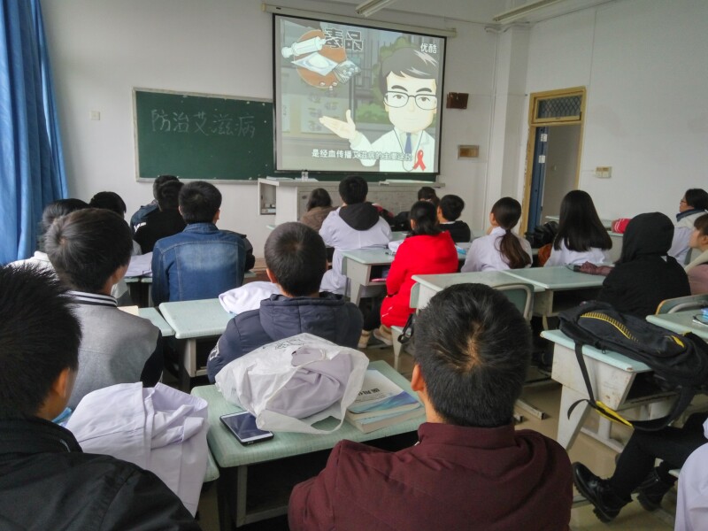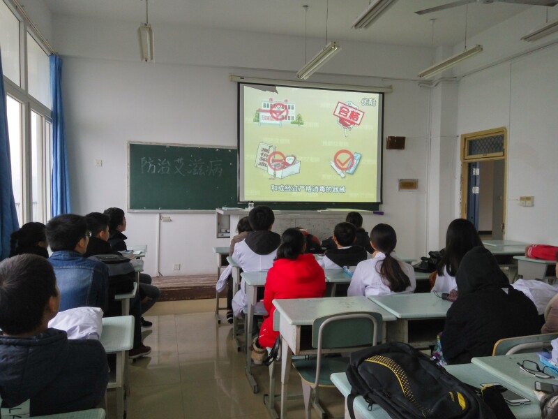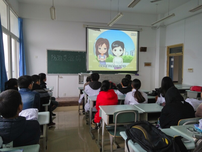听完生动感人的案例故事,全体同学们又聚精会神地观看防治艾滋病的动漫视频宣传资料。视频从什么是艾滋病?艾滋病是如何传播的?如何能不能预防?有没有艾滋病疫苗?能不能与艾滋病患者拥抱?等方面生动形象地展示了如何防治艾滋病,并呼吁同学们关心爱护艾滋病患者。看完以后,大家就“作为一名大学生,该如何积极预防艾滋病”进行了激烈的讨论。