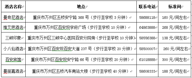 4.自驾:沿重庆、开州、云阳、忠县或石柱至万州高速路在五桥出口下高速,上行至百安坝学府广场上方,重庆三峡学院旁。