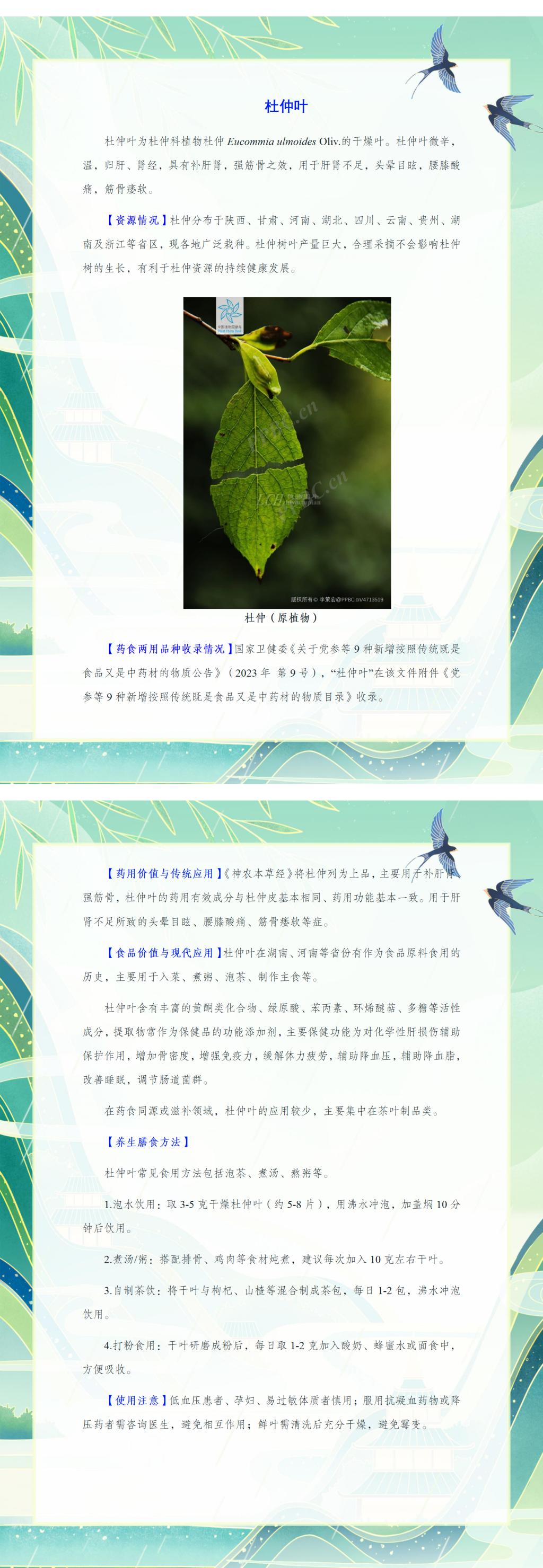 药食同源推介——杜仲叶
