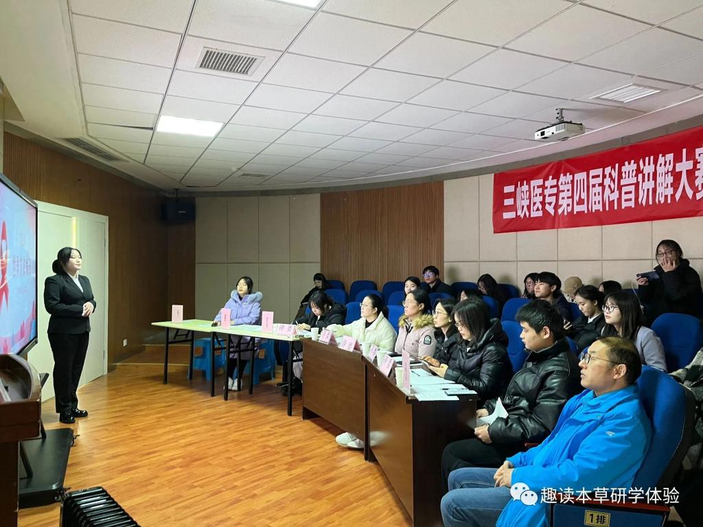 我校三馆作为校内外科普教育的主要基地,每年承担各类参观解说近2万人次。为锻炼现有的科普讲解团队,同时挖掘校内其他优秀的科普讲解人才,遴选出2024年度万州区及重庆市科普讲解比赛选手,向社会各界传播医药知识,传承医药文化,学校于2023年12月26日在生命科技馆会议室举办了三峡医专第四届科普讲解大赛