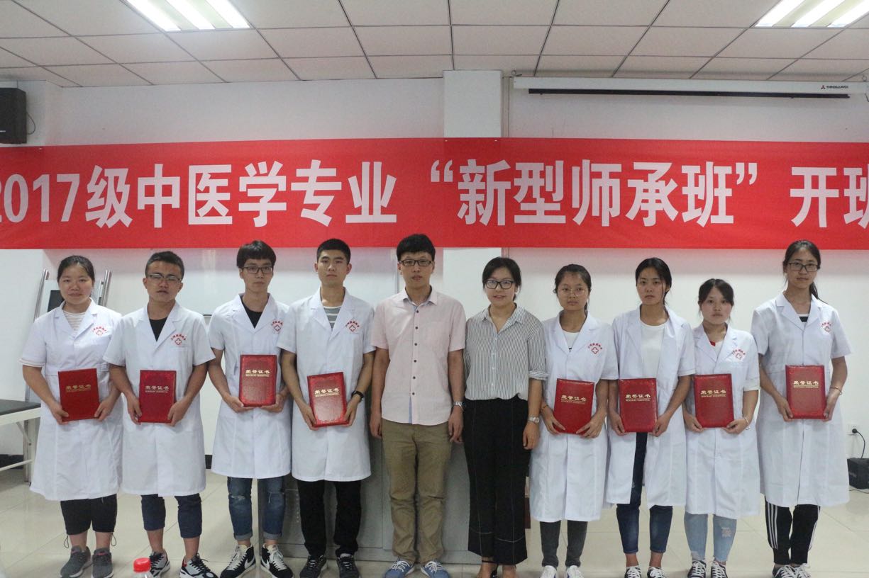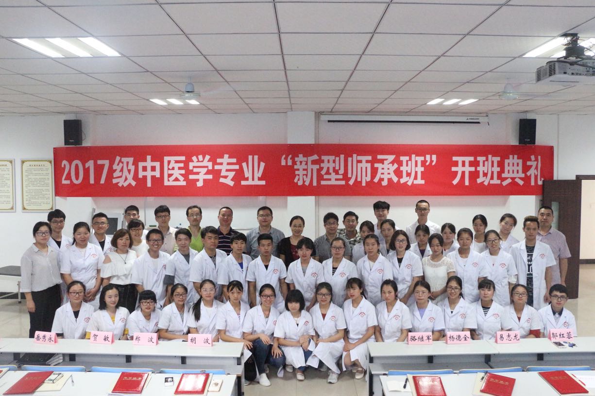 2018年6月14日下午,2017级“新型师承”班开班典礼在学校第二实训楼209教室举行。中医系负责人和万州区名中医杨德全等10名师承班指导教师,2017级中医学师承班40名学生参加。