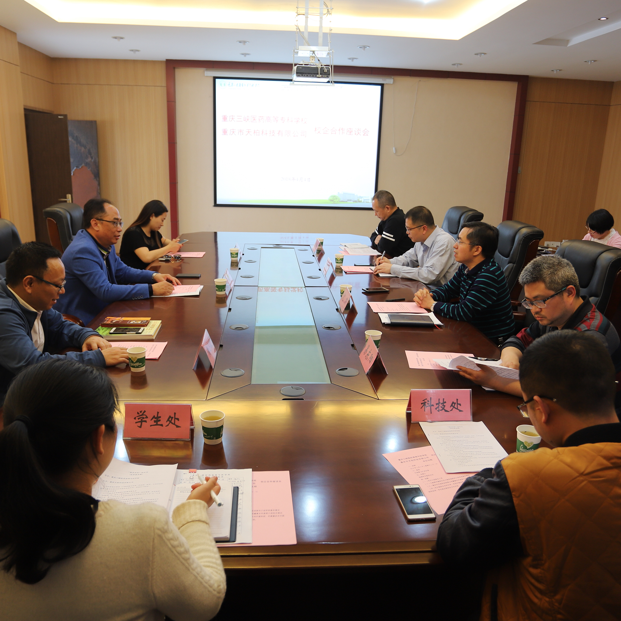 4月4日上午,重庆天柏科技有限公司董事长毕崇君、副总经理黄小波一行3人来学校洽谈校企合作事宜。学校副校长沈力,科技处、实习处、学生处、药学系等相关部门负责人及工作人员参加座谈。座谈会由中医系主任骆继军主持。