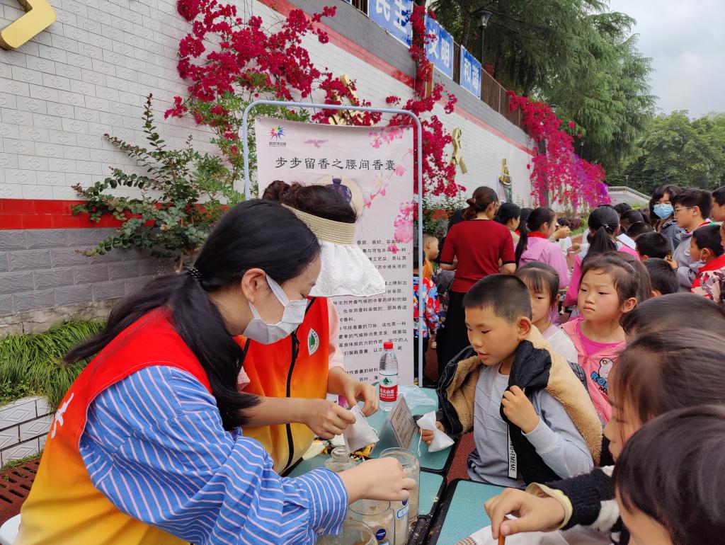 研学指导教师秦建设、贾晗为万州区黄柏学校的中小学生开展了关于中医药文化及中药识别知识的讲座,让学生进一步地了解了传统中医药文化,激发了学生们传承国粹中医药的积极性。研学指导教师杨丽珊、谢秋菊还开展了青春期知识及防性侵安全知识的讲座,让学生们了解了青春期卫生护理知识及自我心理调适方法,掌握了防范和应对性侵害行为的措施和方法,大大提高了学生们的自我保护意识。创意花草体验、中药鉴别、香囊制作、中药是如何制作的、中医如何看病等丰富多彩的体验活动,较大地提高了万州区黄柏学校师生们对中医药文化的兴趣。