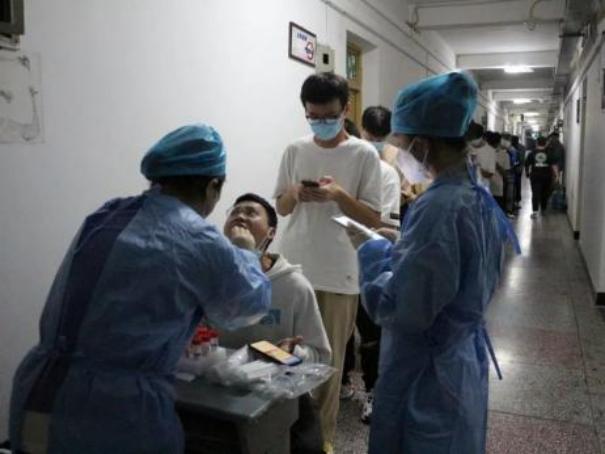 同学们积极配合核酸检测工作,做到有序排队、遵守纪律,同时坚持每日晨检测温,消毒杀菌。