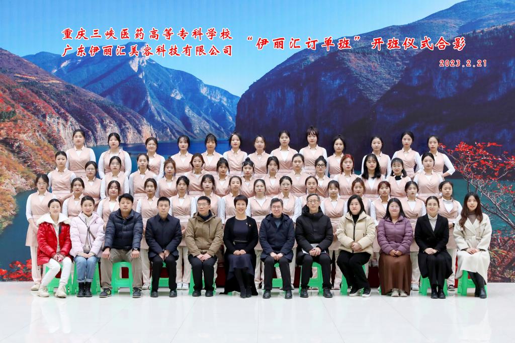 成班仪式上,傅润红介绍了公司的规模、概况、品牌特色和发展成果,表示公司非常注重人才培养和团队建设,今后将进一步优化培养人才、发展人才、成就人才的人力资源策略,并对双方的合作表达了欣喜和期待。教师代表周慧雯对学校和企业为同学们搭建了宝贵的学习平台表示感谢,决心认真开展教学,努力提高教学质量。学生代表李思宇在发言中表示将以优异的成绩回报学校、企业以及社会。随后,沈力和傅润红作为校企代表分别向对方授予“广东伊丽汇美容科技有限公司人才培养基地”和“重庆三峡医药高等专科学校实践教学基地”的牌匾。最后,沈力进行总结发言,向企业对学校医学美容人才培养工作的支持表示衷心的感谢,赞扬了广东伊丽汇美容科技有限公司对行业发展作出的贡献,并表达对本次合作寄予的期望,嘱托医学美容技术专业的教师要不断深入行业前沿,了解行业发展动态,不断提升自身技能,挖掘发展潜力。