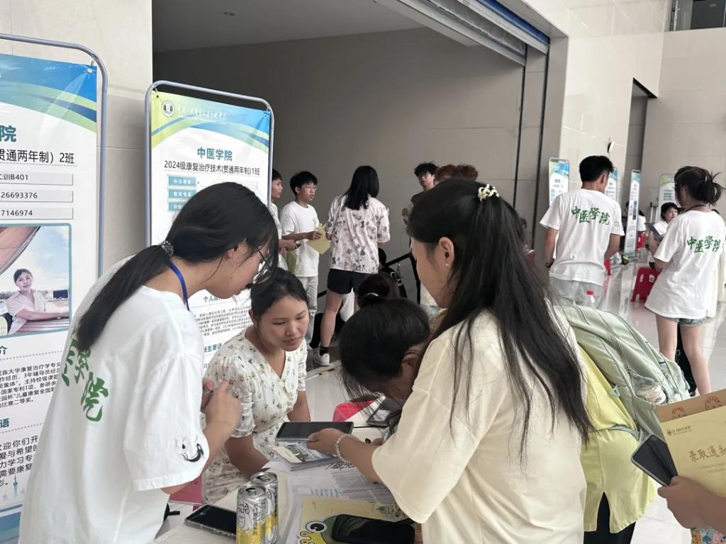 为了确保新生们能够顺利适应校园生活,中医学院经过周密筹备,并精心准备了迎新活动。迎新前模拟了报到流程,确保一切畅通无阻,还设计了富有中医特色的体验活动,细致地布置了报到场地,让新生们在踏入校园的那一刻,就能感受到浓厚的氛围和家的温暖。