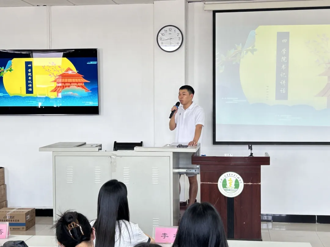 张宜蓓寄语同学们,一是要学会感恩;二是勉励同学们积极面对困难,自强不息;三是遇到困难积极寻求帮助,努力适应大学生活。