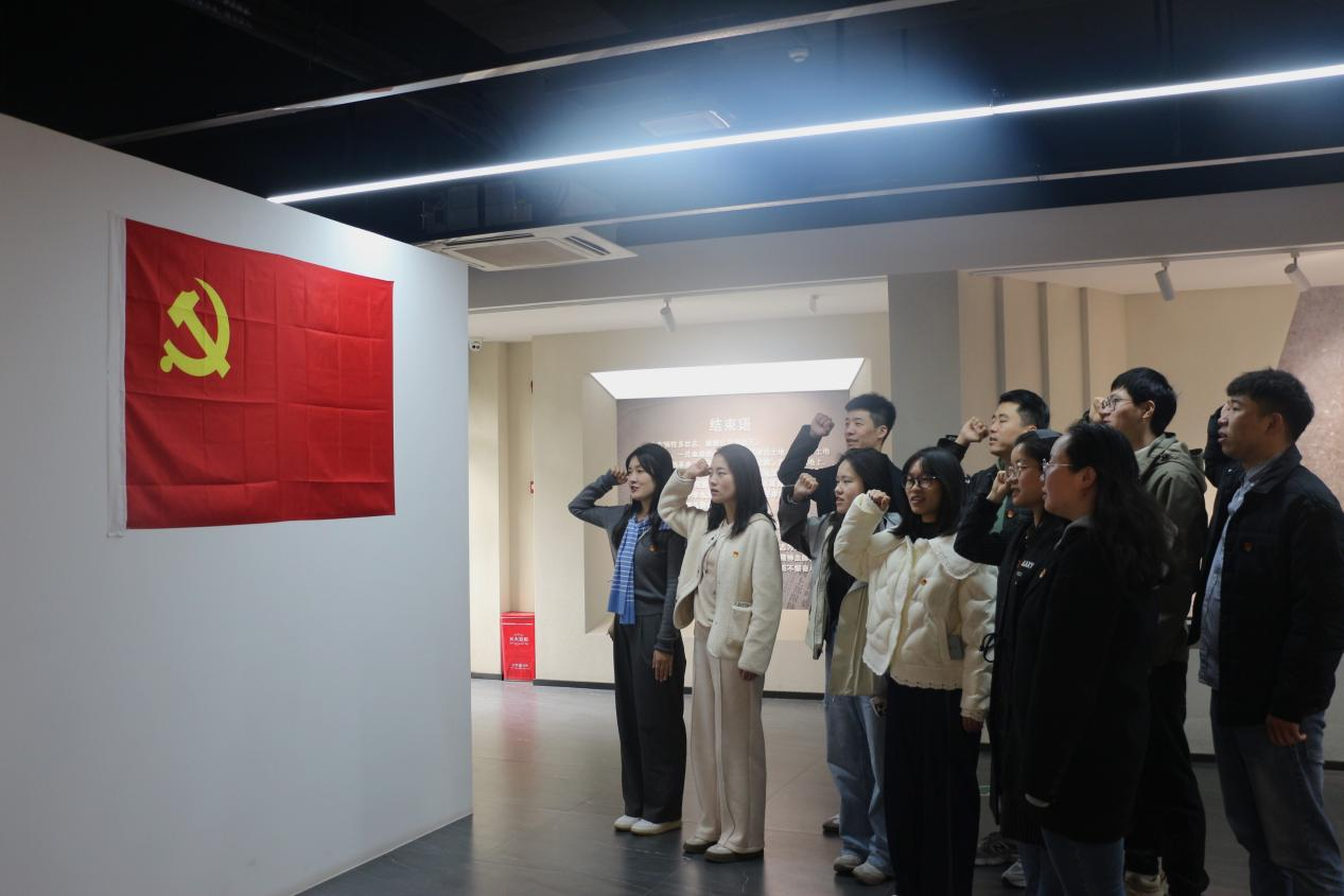全体师生认真聆听讲解,教师党员代表在党旗面前庄严宣誓,重温入党誓词。此次主题党日活动不仅让党员们深入了解了江竹筠烈士的生平事迹和下川东地区革命历史,更是一次深刻的思想洗礼和精神升华。通过缅怀革命先烈,回溯革命历史,党员师生们进一步坚定了理想信念,增强了党性修养,明确了肩负的历史使命,同时也强化了廉洁自律意识。 师生们纷纷表示,将以此次活动为新起点,把革命先烈精神转化为工作和学习的动力,用行动践行誓言,为党和人民的事业不懈奋斗,让党旗在每一个战斗堡垒上高高飘扬,让党徽在每一位党员的胸前熠熠生辉,为推动学校事业的发展贡献自己的力量 !