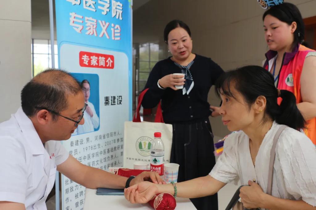在迎新点的义诊区域,学院特别安排了多位中医专家老师坐镇,为新生及家长提供专业、贴心的健康咨询服务。老师们不仅细致问诊、耐心把脉,还针对常见的健康问题给出实用建议,讲解中医养生理念和调理方法。不少家长借此机会咨询孩子在外求学的健康注意事项,老师们一一悉心解答,现场氛围温馨而专业,让新生和家长们深切感受到中医药文化的博大精深与人文关怀。