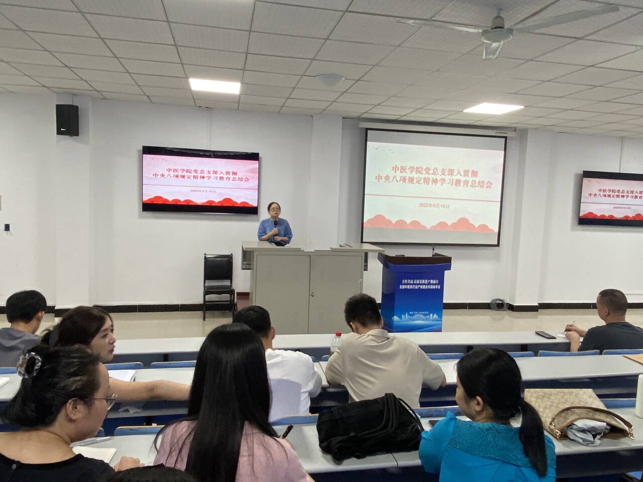 9月16日下午,中医学院党总支在二训403召开深入贯彻中央八项规定精神学习教育总结会,学院全体党员教职工50余人参加。