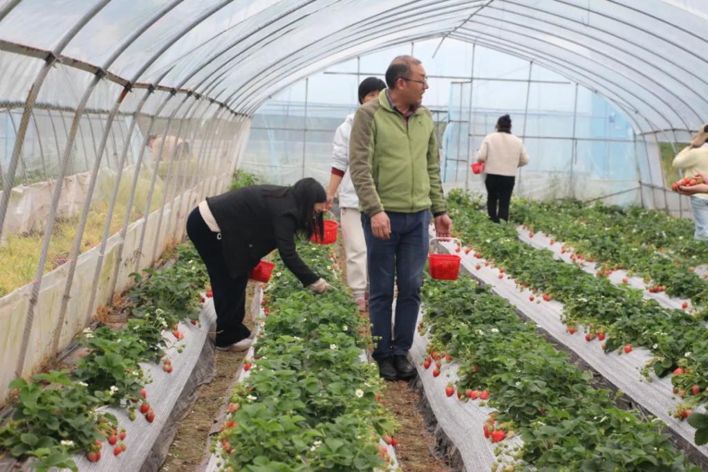午后,活动正式进入精彩环节。首站是“田园采摘·草莓之恋”。教职工们走进春意盎然的草莓大棚,亲手采撷颗颗鲜红饱满的果实,在清新的田园气息中体验劳作的乐趣,品尝春天的第一份甜蜜,交流着生活趣事,身心得到了极大的放松。