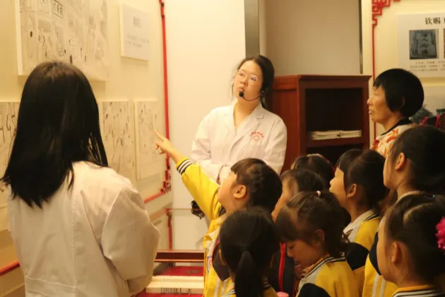 走进三峡中医药文化馆,馆内的名医雕像、针灸铜人以及太极八卦等陈设,让小朋友们好奇不已,拉着家长四处打量。基地老师用充满童趣的方式,为大家讲解中医药的发展历史。在一幅幅连环画中,名医治病救人的故事生动地呈现在小朋友们眼前,使他们初次感受到中医的神奇。在仿古院落中,传统的石磨让大家兴奋不已,纷纷上手体验中医传统磨药方式,玩得不亦乐乎。随后,在老师的指导下,小朋友们还和家长一起学习、体验了“望闻问切”四诊法,在充满乐趣的亲子互动中进一步了解中医。