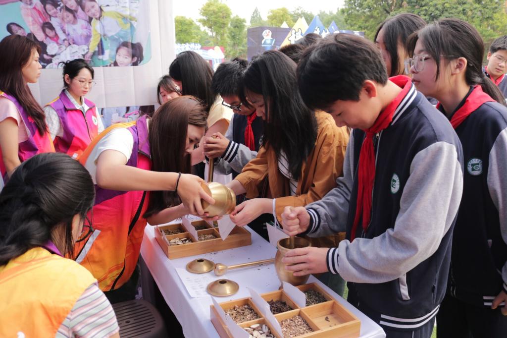 三峡中医药文化馆带来了中药香囊的制作体验活动。在工作人员的指引之下,同学们根据自己的需求选择具有提神醒脑、预防感冒等用途的中药配方,并按方配药、碾药、填充香囊等制作流程,制成一款自己喜爱的香囊。中药科技馆则带来了中药花草扇的制作材料,同学们根据自己的喜好选择中药花草,发挥创意制作花草扇。生命科学馆则带来人体拼装模型,学生们在拼装的过程中了解人体的奥秘。有趣的实践活动,激发了学生对中医药文化的兴趣和好奇,在动手实践和创新的同时,学生们体会到背后的文化意义,感悟中医药文化的深厚内涵。